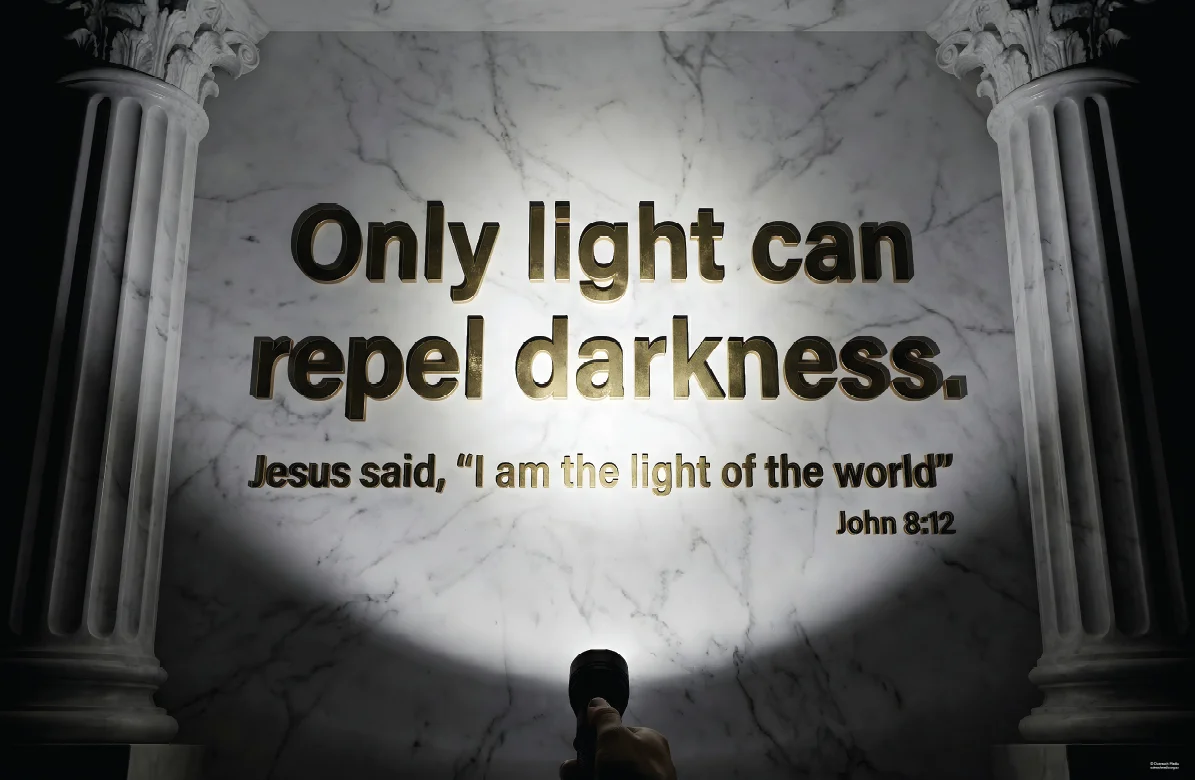 The light of Jesus – his sinless life, his sacrificial death, his triumphant resurrection from the dead, is the only thing that can truly repel the darkness in the world and the darkness in ourselves. Eradication of evil won’t come to full fruition until Jesus comes back to earth to consummate his eternal kingdom. Until then moral darkness will always plague our world. Yet we can walk in his light, we can confess our sins and be forgiven. We can repel the darkness within us with his pure light, and shine that light to those around us.